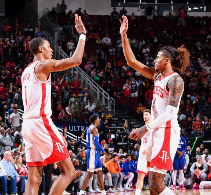 今年夏天火箭队也直接交易走了惠特摩尔和杰伦·格林,根本就不带犹豫的。现在剩下的5位年轻球员分别是谢泼德、申京、伊森、小史密斯和阿门·汤普森。这5位球员当中,除了谢泼德之外,其他4人都已经在常规赛里证明过自己。就算是谢泼德,也被火箭队寄予厚望,下赛季预计会让他成为范弗里特的第一替补,掌管火箭队的进攻。